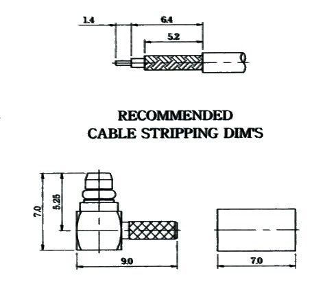 MMCX tata cablu sertizare la 90 grade RG174